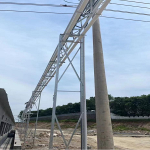 室外送料系统,通过螺旋弹簧绞龙旋转送料。 主料塔内饲料通过绞龙运转把饲料输送到每个小料塔或料箱内。在主料线的适当位置装有料位传感器,自动控制驱动电机的启闭,达到饲料的自动化输送。